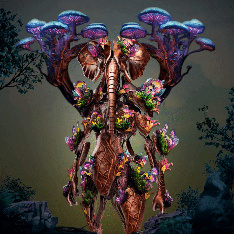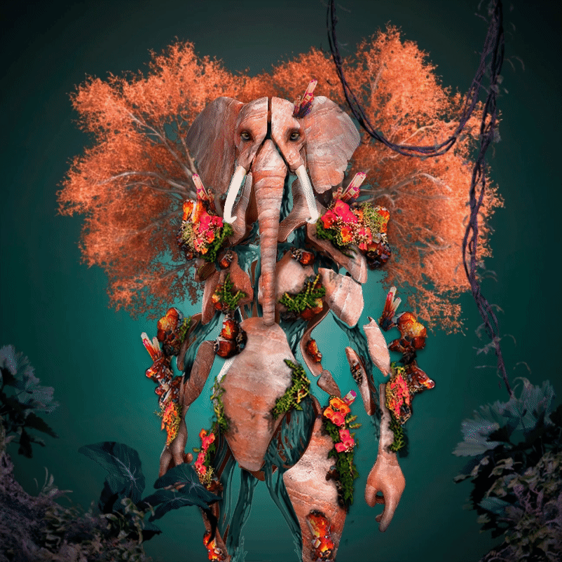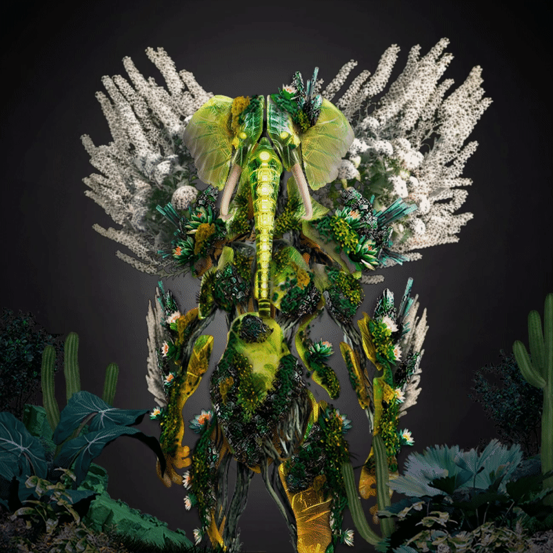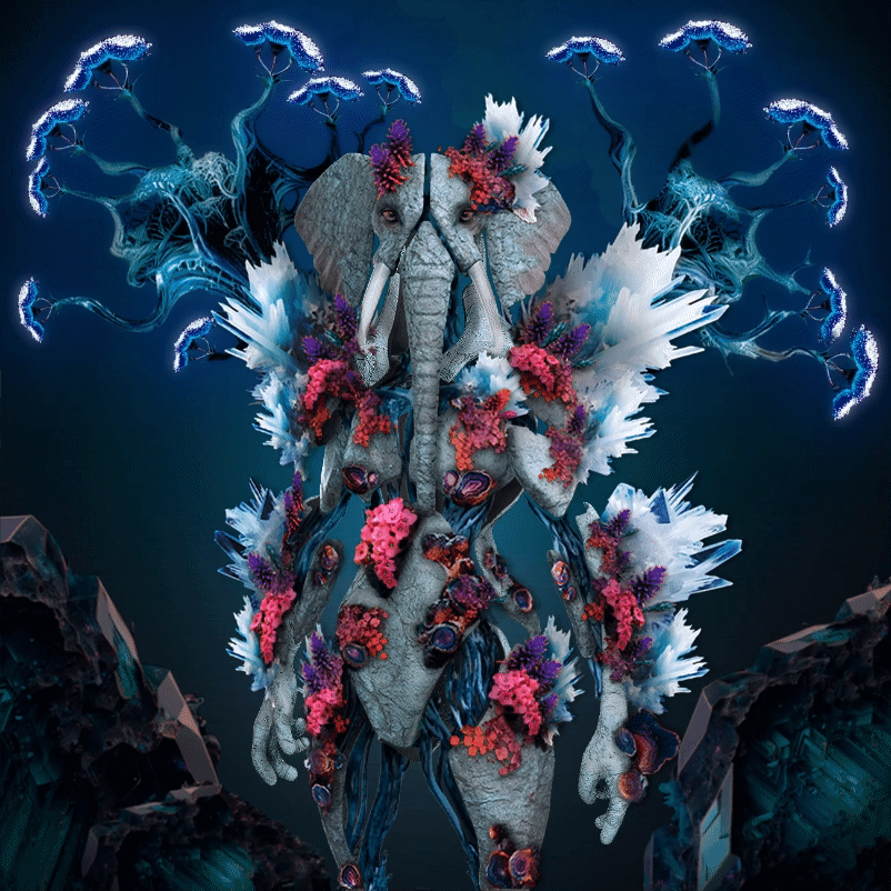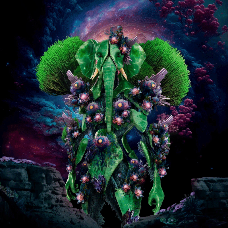 This was our third consumer drop, a more advanced and animated 5 layer trait matrix with the base character of an elephant Ecosapien.