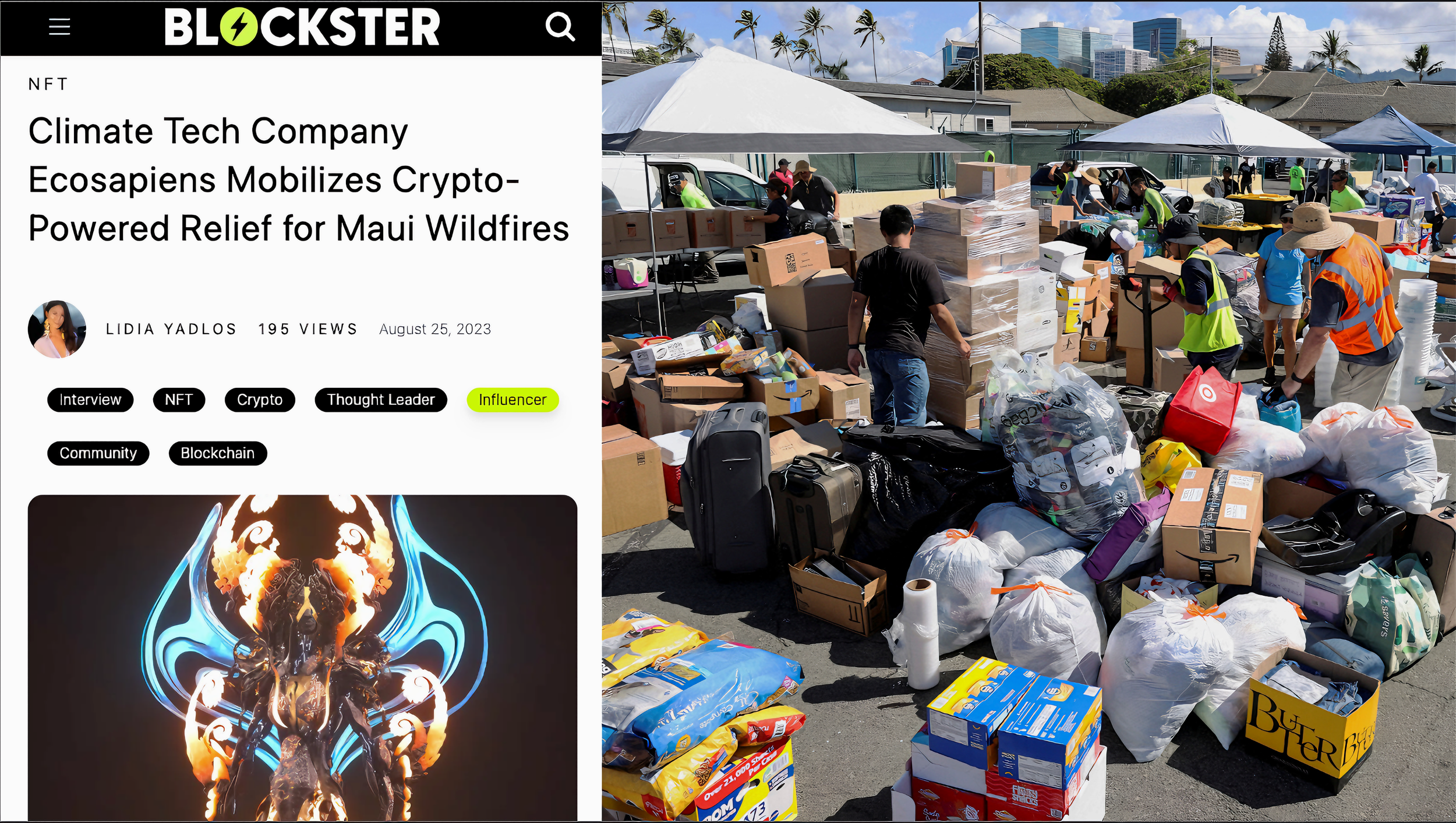 The Ecosapiens community rallied to support Maui wildfire disaster relief, aiming to raise $10,000 through limited edition Mauisapien NFTs priced at $10 each. These devastating fires, the worst natural disaster in Hawaii's history, claimed at least 55 lives, destroyed over 1,000 buildings, and displaced thousands. As the crisis unfolded, Maui sought urgent support from the web3 community.