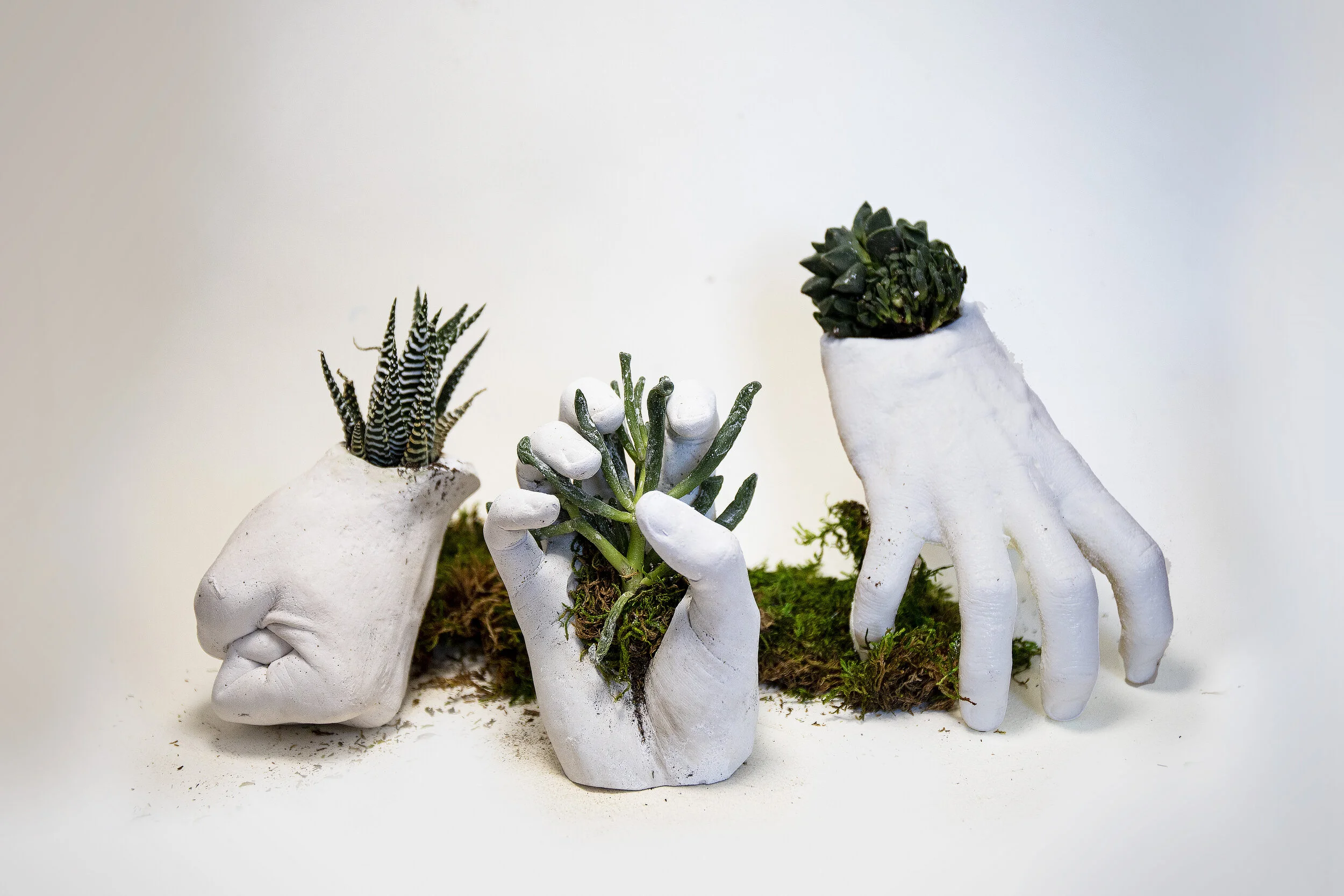 Our grasp of nature has never been more tenuous. In light of this Gestates suggest the new ways we’re learning to reconnect with life, both in nature and humanity. This limited series is an edition of 15 for each version available for commission pending how many are left. (Succulents may vary.)